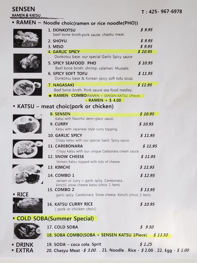 SenSen Ramen, Katsu, & Roll Menu